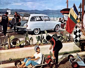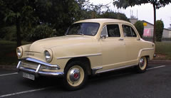 C'est bien une Deluxe six de 1958,que j'ai trouvé en parfait état d'origine;la restauration c'est bornée au remplacement du système de freinage et du radiateur plus une peinture 2 tons;Elle a 48000km d'origine avec un moteur rush 6 et a fait sa carrière en Afrique,elle est bien une export.Elle fonctionne à merveille et nous nous promenons presque tous les week-ends avec et elle sert d'escorte a sa grande sur une C4 Citroën de 1929 au cas ou !!!!! |