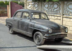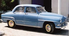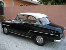 Dans son état d'origine, 70000 kms. Modèle Deluxe dans sa livrée noire. j'ai simplement du refaire les freins, les amortisseurs, les pneus, et l'echappement. Reglage des culbuteurs ainsi que du carbu. L'intérieur, quand à lui, est dans un bon état de conservation, et mis à part les entourages de portes en bakélite à recoller ponctuellement, le reste est tout à fait acceptable. Je m'en sers le week end, c'est une auto très agréable à conduire et ça fait toujours plaisir de voir les gens sourire à votre passage. |